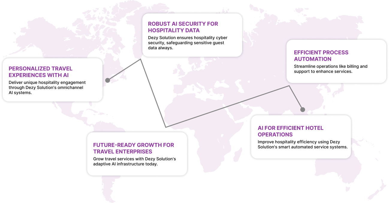 From hotels to travel agencies, Dezy Solution delivers AI hospitality solutions that optimize services, boost revenue, and create memorable guest experiences.
